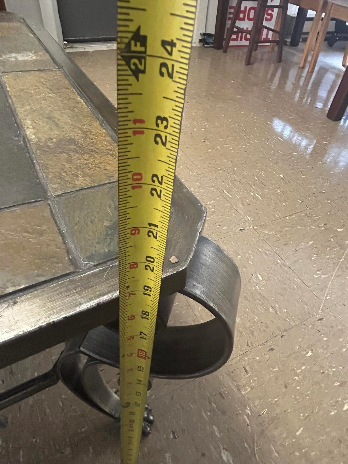 Elevate your living space with this stunning coffee table featuring a beautiful slate top and elegant wrought iron legs. The unique design includes various shades of slate that add character and charm to any room. A convenient lower shelf provides additional storage for books or decorative items. Its durable construction ensures longevity while the intricate leg design adds sophistication.