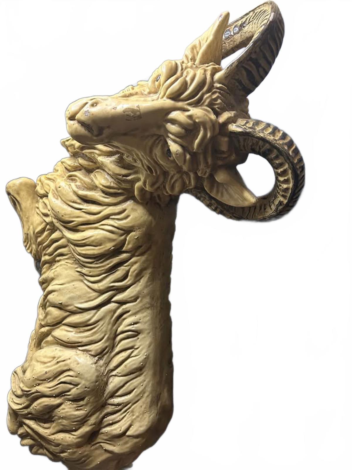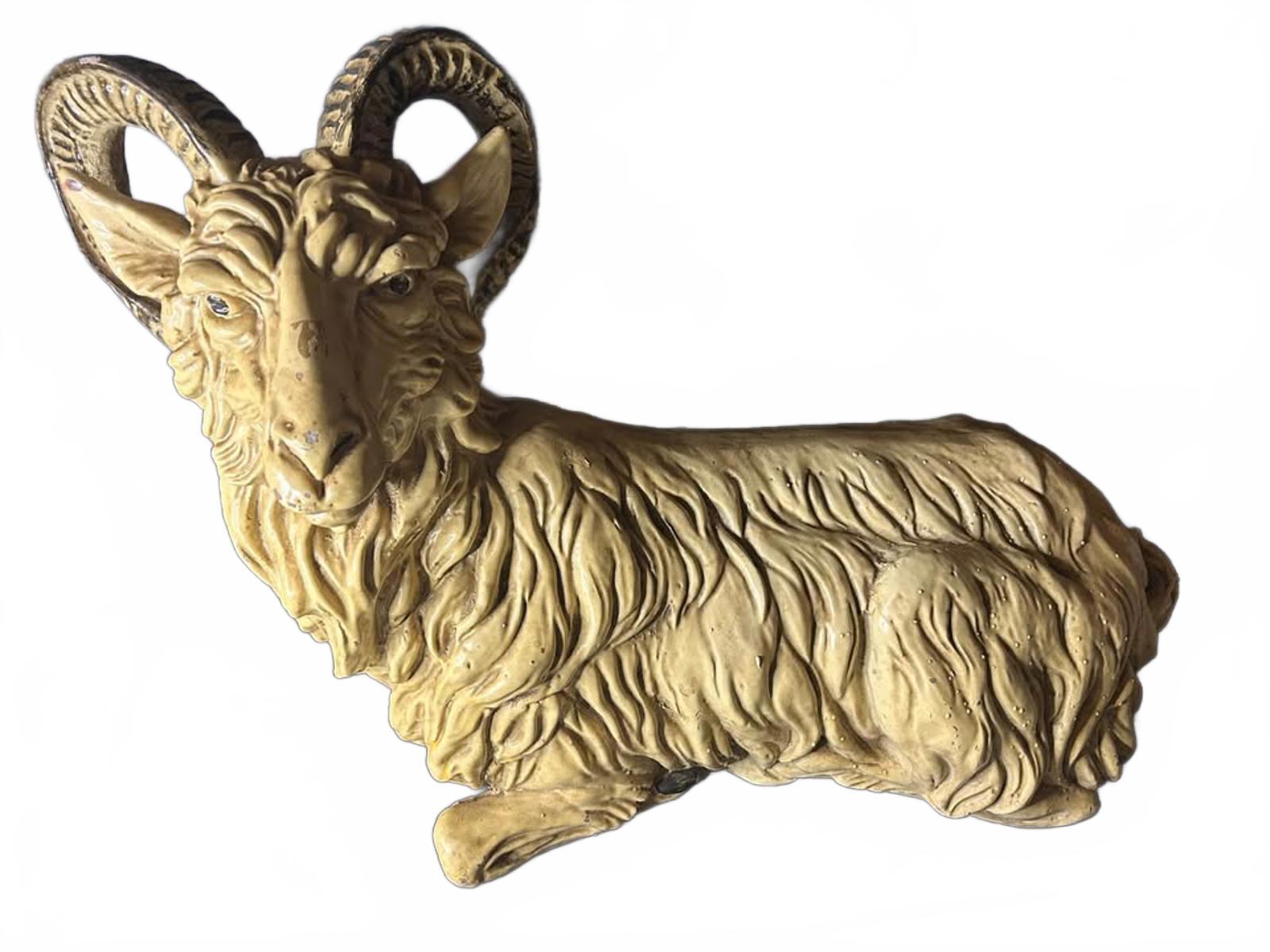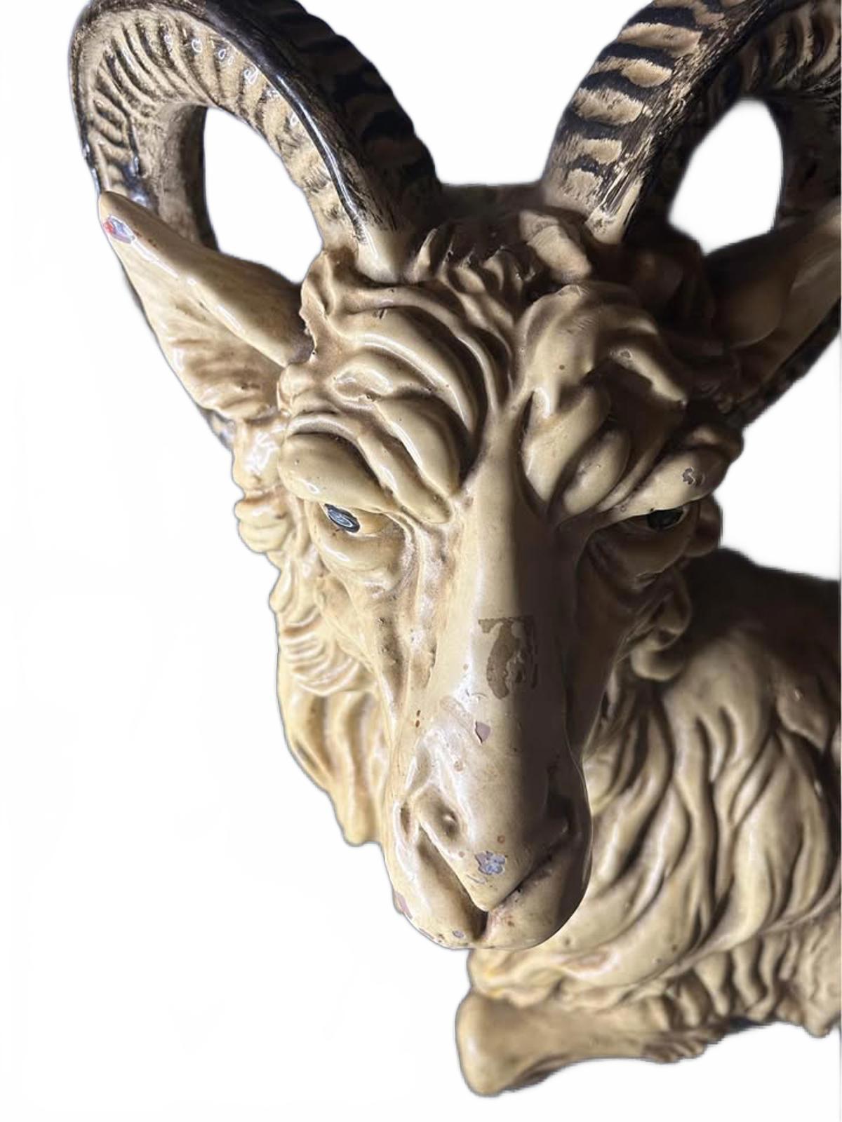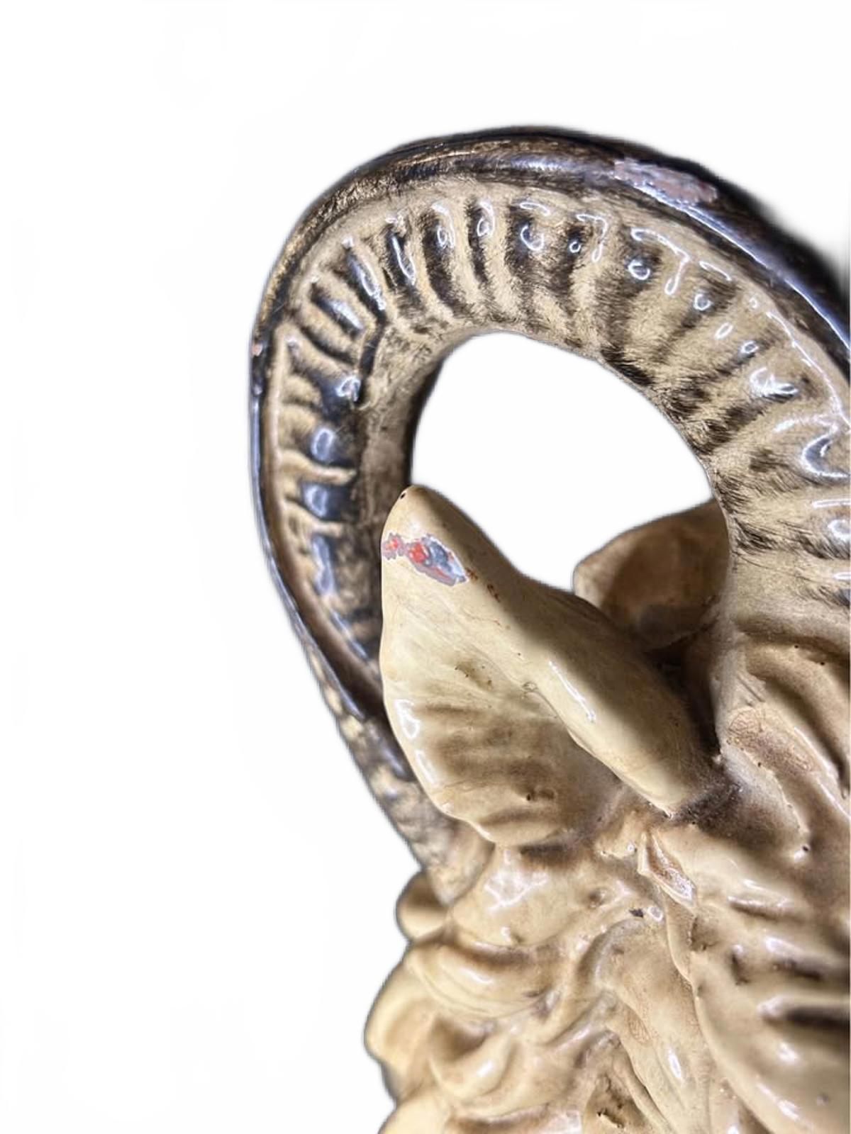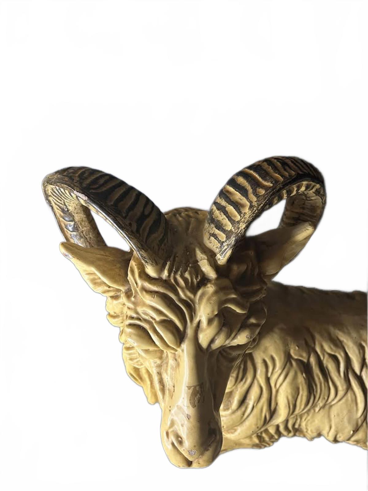 Elevate your space with this exquisite antique ceramic ram figurine. This meticulously handcrafted piece features intricate detailing, showcasing the ram's realistic features and charming expression. Ideal for collectors or as a unique decor item for any room.