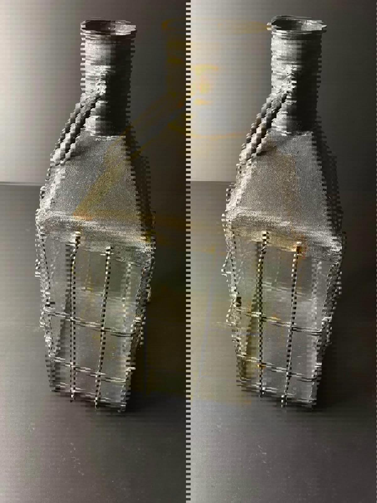 Illuminate your space with this Vintage Metal Lantern, featuring a rustic design that adds charm to any setting. Perfect for indoor or outdoor use, this lantern is crafted from durable metal and features protective glass panels secured with a sturdy wire cage. Ideal for creating a cozy atmosphere at your next gathering or enhancing your home decor. Key features include: - Classic design with a nostalgic appeal - Sturdy metal construction for longevity - Glass panels for optimal light diffusion - Easy to carry with a robust handle - Versatile for various settings and occasions.